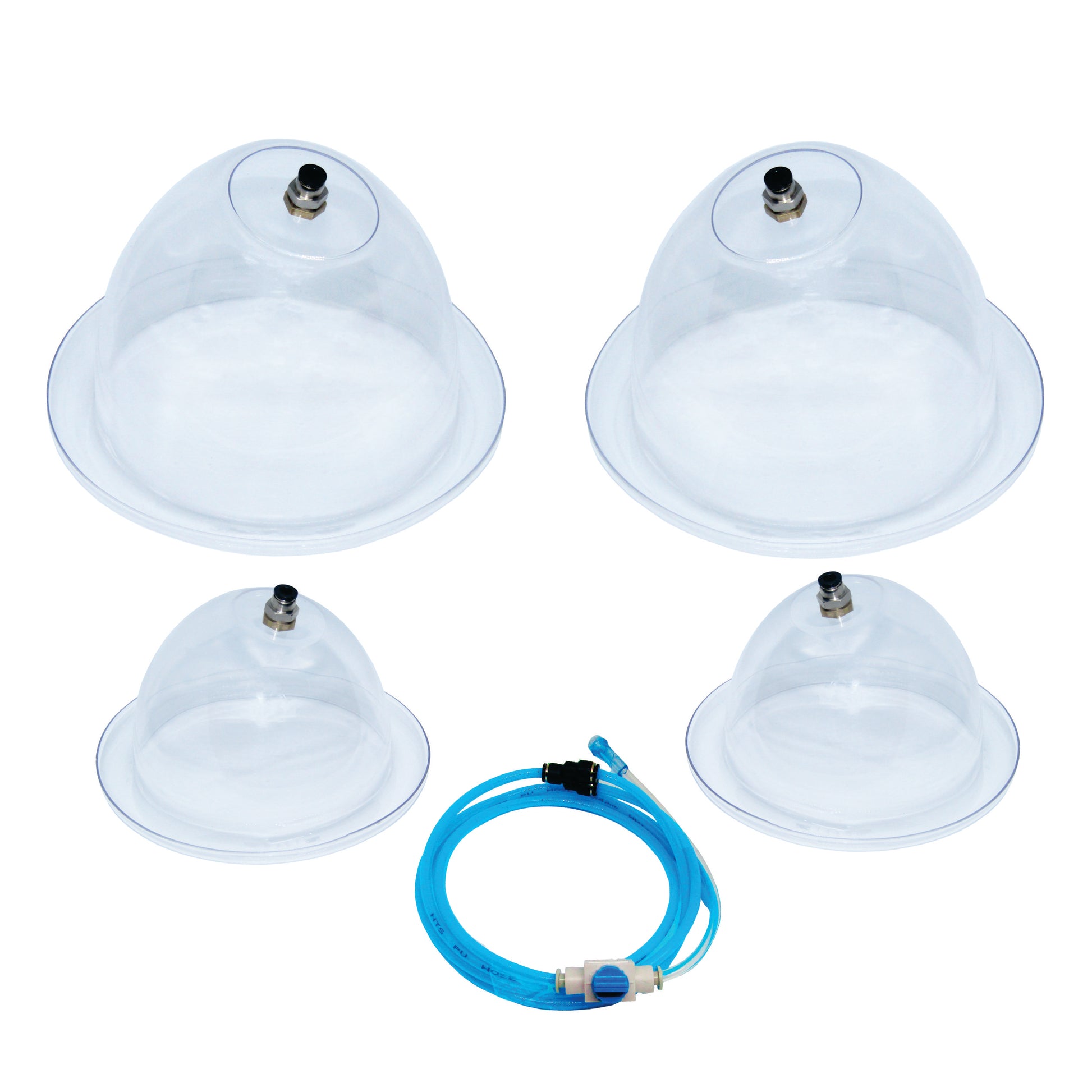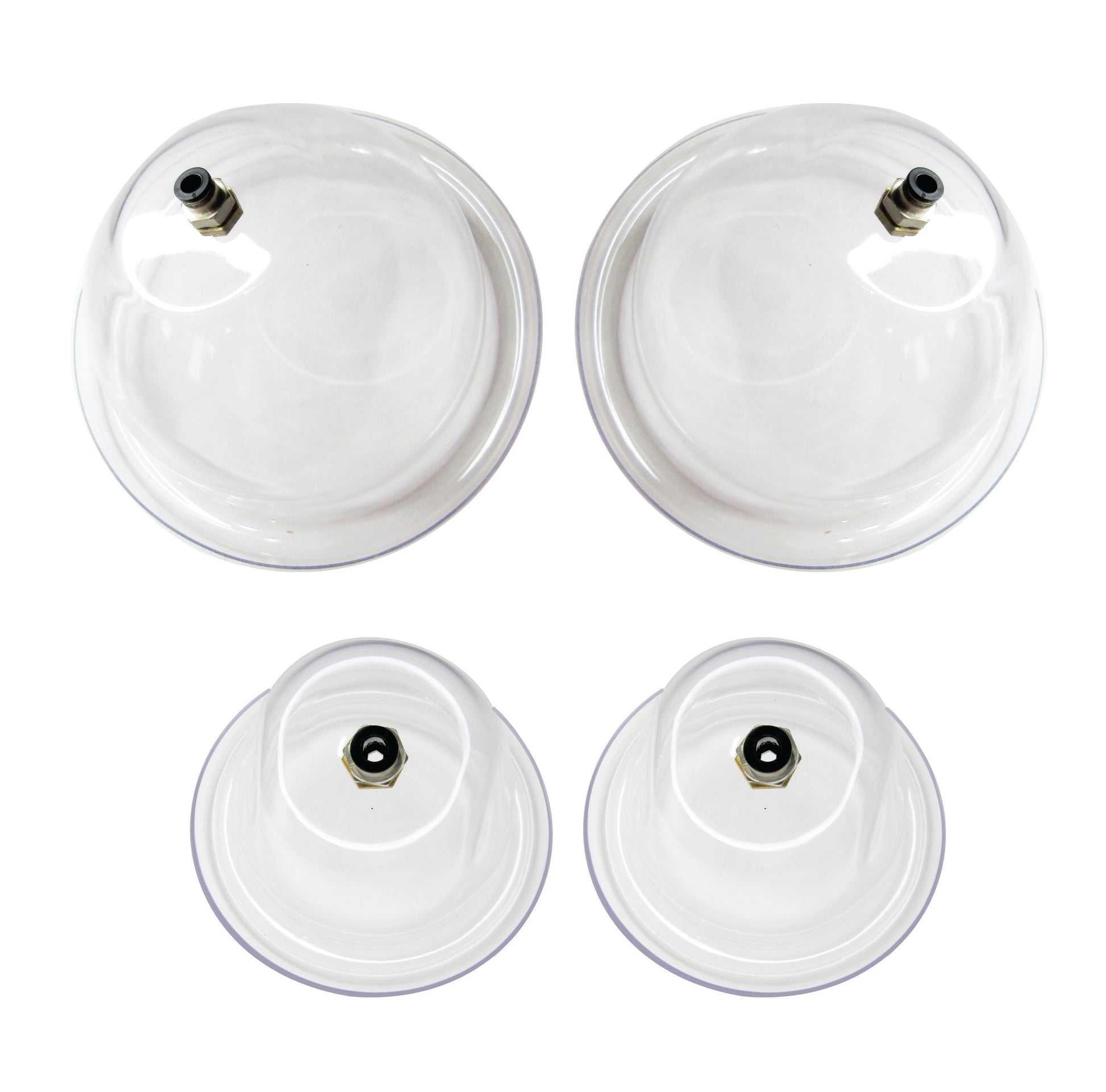 Transforma tus tratamientos estéticos con este Kit de Vacumterapia VitalTronic, que incluye dos copas de 13cm de diámetro interno y dos copas de 10cm de diámetro interno, fabricadas en material sintético cristalino de alta resistencia e indeformables.